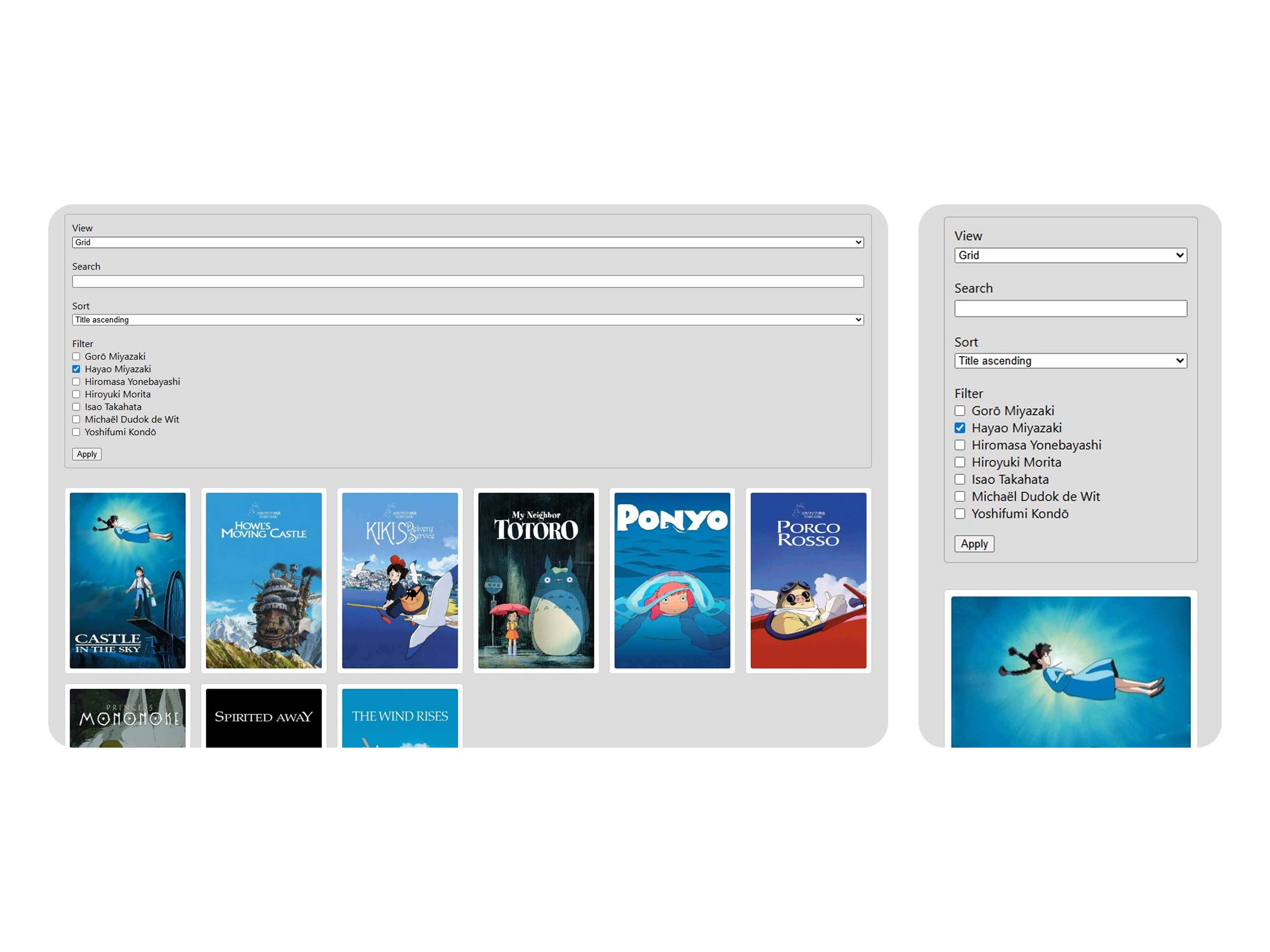 Projet d’évaluation finale de mon cours de JavaScript. À partir d’un HTML et CSS déjà fournis, j’ai implémenté toute la logique en JavaScript Vanilla pour afficher dynamiquement les films du Studio Ghibli, avec tri, filtres et recherche en temps réel.